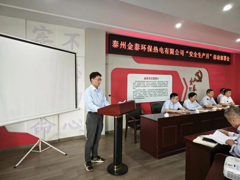 活动首先由安健环部经理常兵对2024年“安全生产月”活动方案进行了解读,本次活动方案根据国务院安委会办公室、应急管理部《关于印发2024年全国“安全生产月”活动的通知》(安委办[2024]3号)、《关于印发2024年园区(街道)“安全生产月”活动方案的通知》(泰滨安办[2024]5号)的通知要求,结合公司实际而制定,活动时间贯穿整个6月份,由公司安全生产工作领导小组统一部署,公司安健环部监督落实。活动方案围绕“人人讲安全,个个会应急——畅通生命通道”的主题,共制定了“教育宣传”、“应急演练”、“安全知识竞赛”等八项活动计划。活动要求集团各部门、热电事业部、建材公司紧紧围绕活动主题、方案,采用多种形式,开展安全文化宣传工作,营造浓厚氛围,充分发动一线员工参与,进一步分解落实,促进“安全生产月”活动的高质开展。