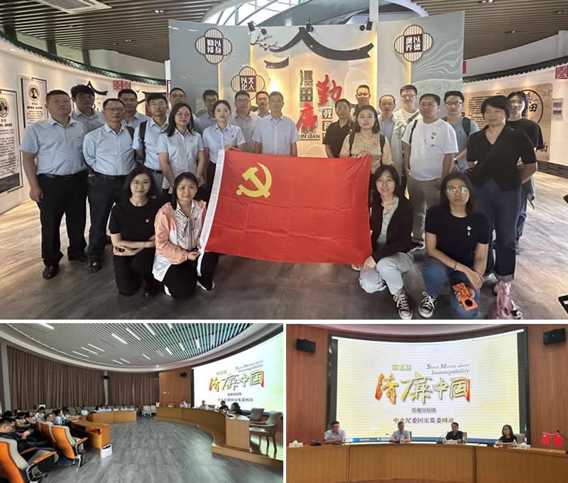 双方支部党员共同观看了《公务接待》专题廉政微党课,在讲解员的带领下,在廉政教育馆进行了参观学习。在勤廉教育馆内,大家学习了党和国家领导人重要讲话、反四风金句、反四风漫画以及江宁本地清正廉洁人物事迹等内容,随后在 “茶、莲、松、竹”主题场景户外廉政教学点,大家认真学习廉洁文化,深刻领悟茶莲松竹的高贵品质。