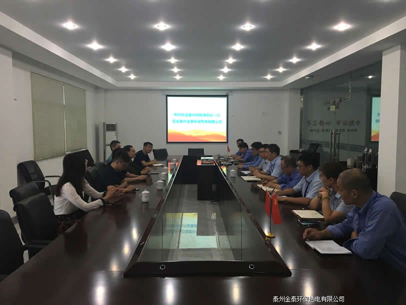 9月16日,泰州学院李院长一行6人到金泰热电就我司管理人员专题培训工作进行前期交流,公司总经理徐振华、总经办经理周志丹、生技部副经理陈卓、经理助理黄纪军及部分员工代表参加座谈。